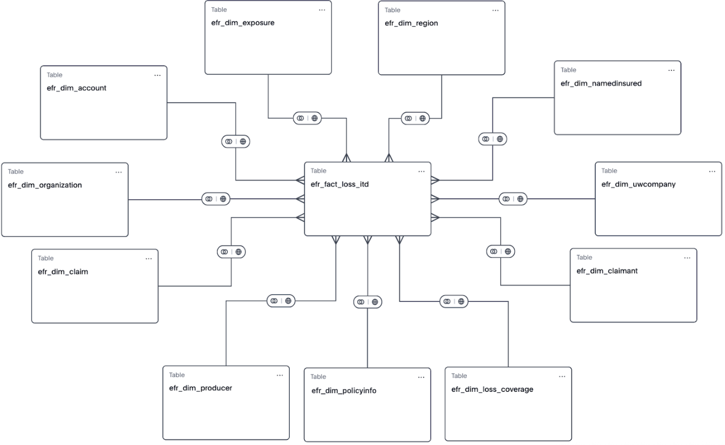 efr_dim_uwcompanyefr_dim_namedinsuredefr_dim_organizationefr_dim_exposureefr_dim_producerefr_dim_claimantefr_dim_claimefr_dim_regionefr_dim_accountefr_dim_policyinfoefr_dim_loss_coverage