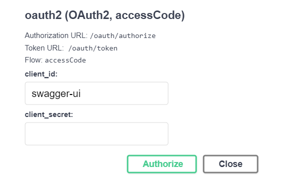 6. For OAuth2, perform the following steps in the oauth2(OAuth, accessCode) section of the Available authorizations dialog.