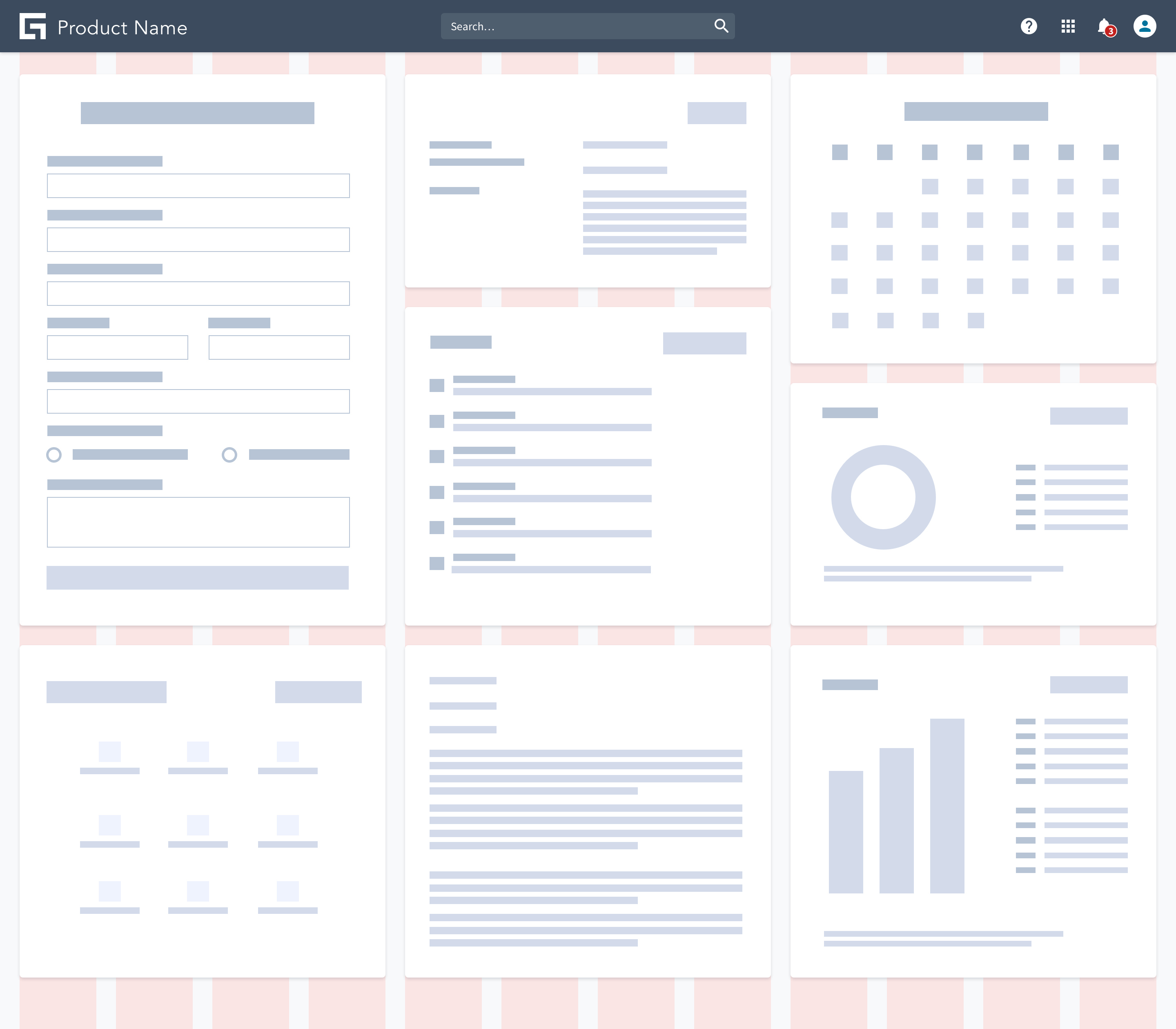 Cards align to the column grid and are the primary containers for placing content on the layout grid in the main area.