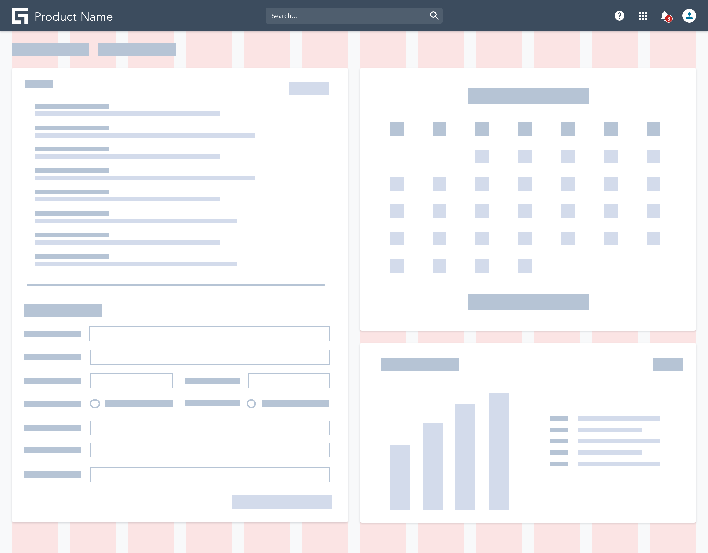 Cards as panels (<Card isPanel />) are used for the left and right sidebars for contextual content such as navigation or controls.