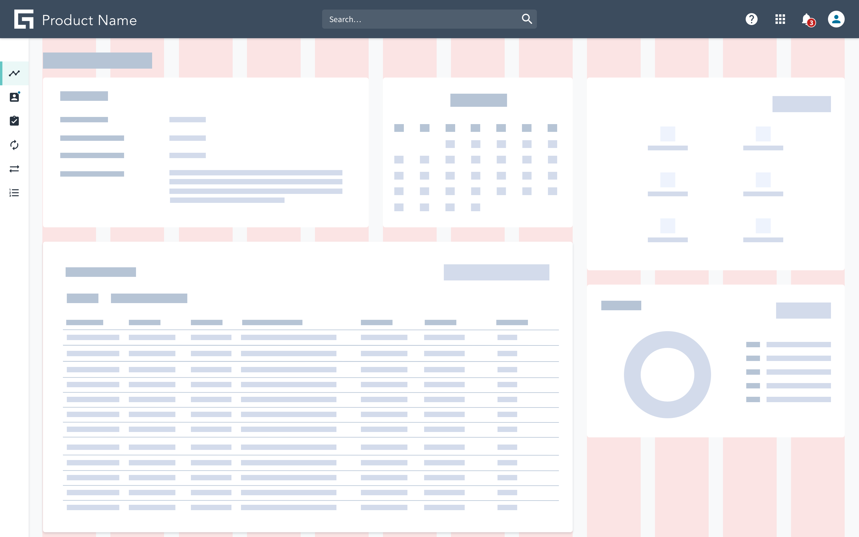 - Left navigation: left navigation organizes the content structure and provides context to orient users. It occupies the left of the screen and spans vertically from the header to the bottom of the page.