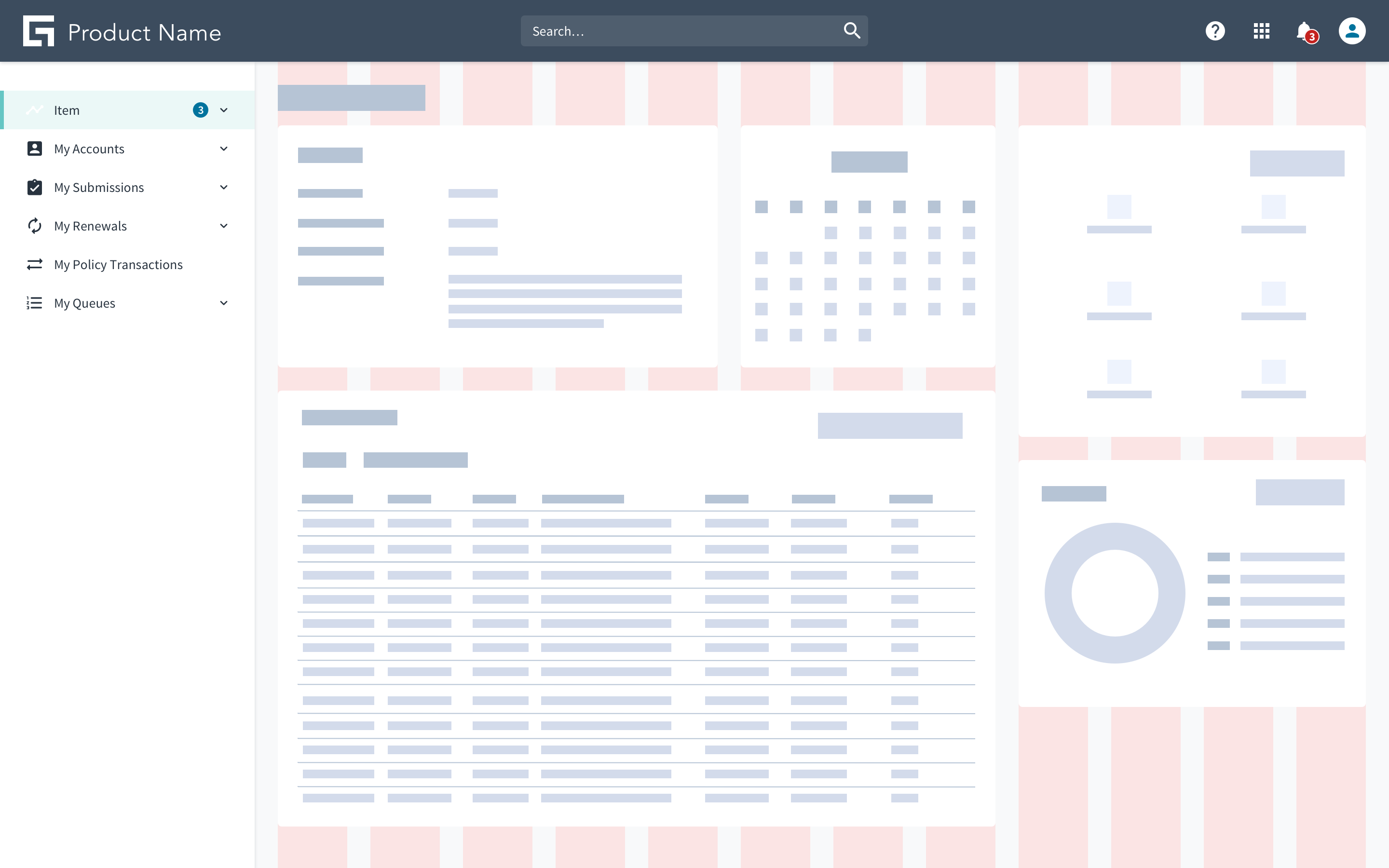 Left navigation includes pre-grouped components for navigation. When you select from these elements, the view of the main content area changes to reflect the selection.