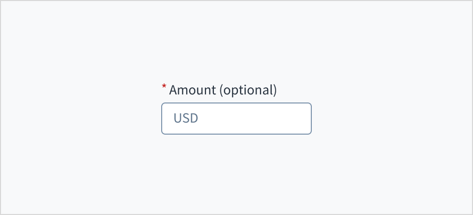 The label for the currency input field can appear at the top (default and recommended) or on the left of the input itself.