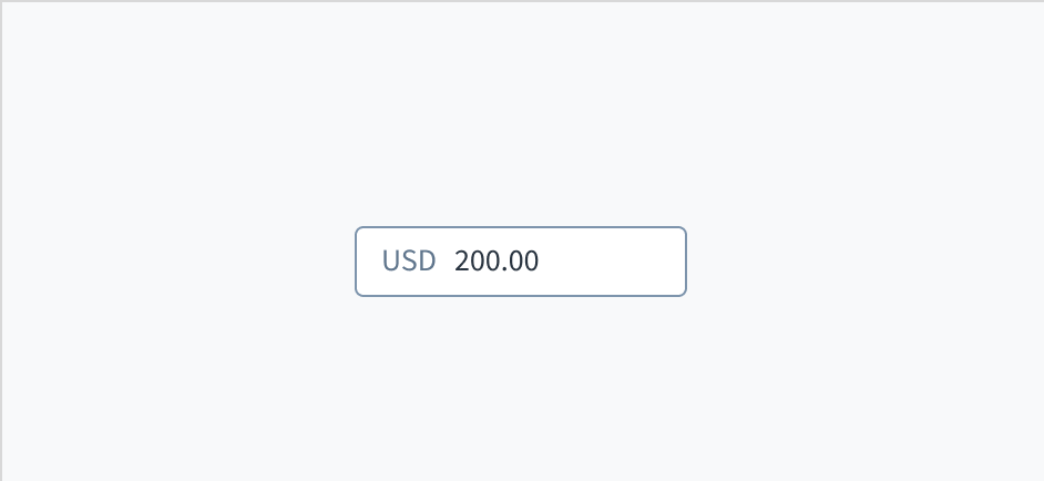 - Currency input field: the container, consisting of a fill and a stroke, in which the user enters data.