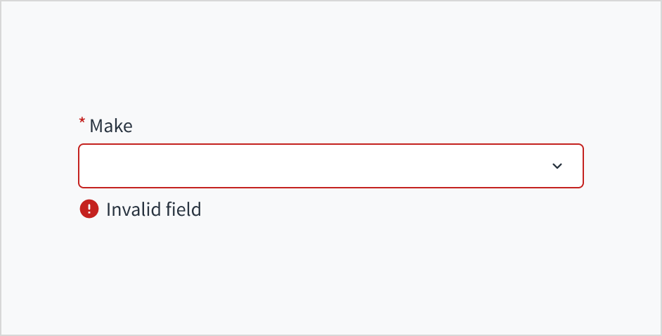 Error message text tells a user how to fix the error. In the case of the dropdown, errors are often related to something that must be fixed for in-line validation. For example, if someone doesn't select an employment status and this is a required field, you can use error text to guide the user to a solution: “Select an employment status.”