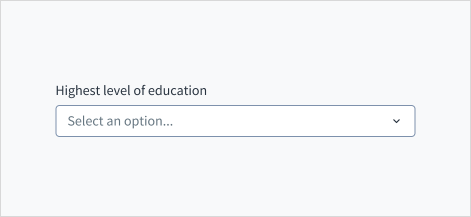 The dropdown component presents users with a set of options from which they select. Dropdowns progressively disclose options, preventing users from seeing too much information at one time. They can also be used to group information. Dropdowns are always supported by a field label or title that is positioned before the control.
