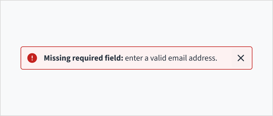 | Error | Inform users of errors, unsuccessful actions, or critical issues that might prevent the user from continuing with their task. |