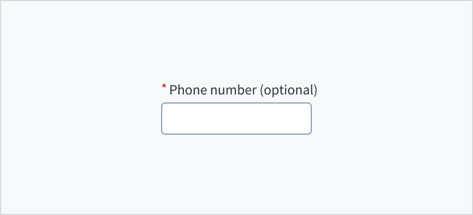 Use an asterisk (*) to indicate required fields. The asterisk precedes the field label. This helps users to easily locate which fields are required by scanning just the left-most character of the label.
