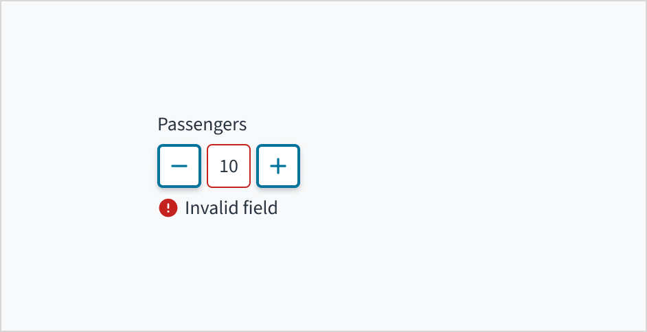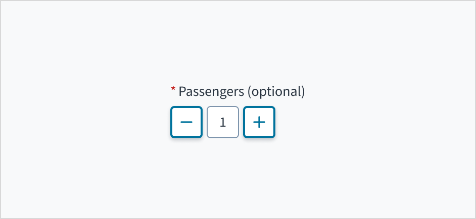 Label: Indicates what value the stepper changes, such as number of passengers.