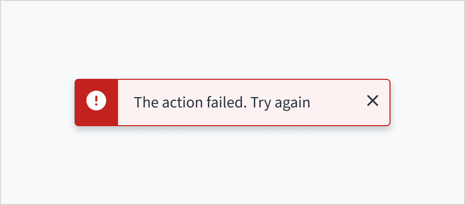 - Be mindful of context: Inline notifications and error messages respond to their container panel, and toasts can be made "full-width" in small form factors depending on usage. Well-chosen, concise wording ensures clarity regardless of these adjustments.